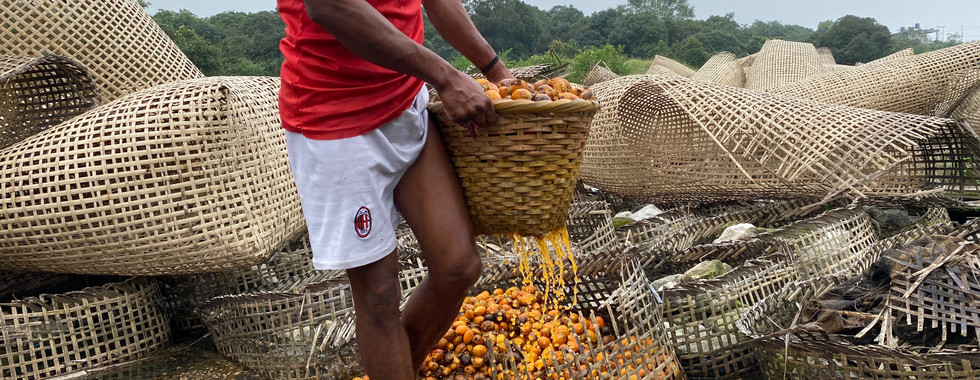 She stated that, the fresh kwai (betel nut) comes from Tura and Silchar on the month of April. After they recieved the fresh kwai, they fermented it in a special place call ‘pukri kwai’ in which more than 100 long baskets like structure is place in the pond made specially for fermenting this kwai. Around 10-20 sags of Kwai is then poured in each baskets and then it is cover with sags and rocks on the top of the baskets and the fresh kwai is being left for 3 to 4 months. After 3 to 4 months this kwai is ready to be taken out and it is no longer call Kwai im (fresh areca nut) but it is then called Kwai skop (fermented areca nut).